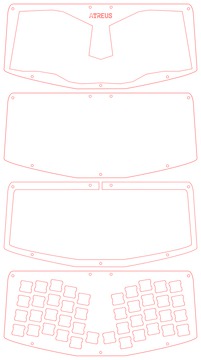 4-layer laser-cut case for the Atreus keyboard. Full details and assembly guide available at https://github.com/technomancy/atreus