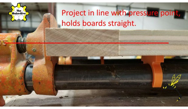 Holds project more in-line with the screw, preventing canter when tightening the clamp. Clips on to 3/4" (1" O.D.) pipe clamps so they stay in place. Ideal for wood from 5/8" to 7/8". Keeps projects off of the pipe preventing "black spots" from the glue drawing iron into the wood.